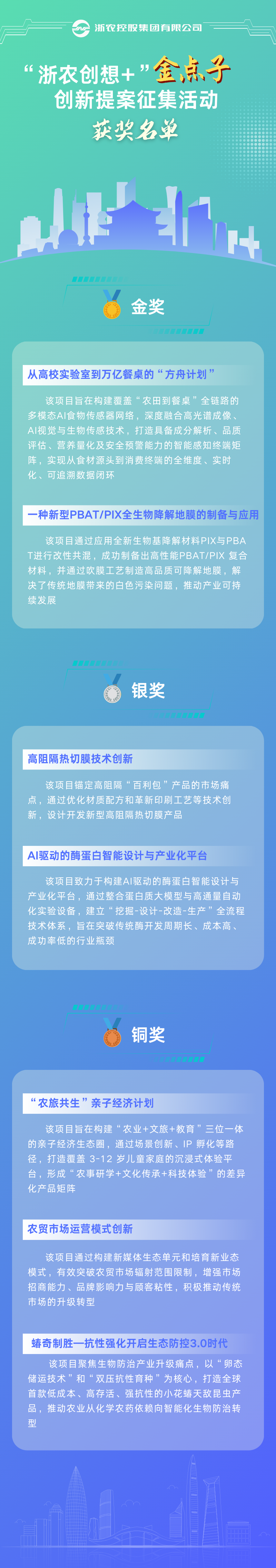 活動的成功舉辦,不僅為內外創新主體搭建了交流展示平臺,更彰顯了集團以創新賦能發展,扎實推進新經濟增長點培育工作的堅定決心。集團將持續搭建更廣闊的創新平臺,完善創新激勵機制,推進優質項目的落地轉化,讓“金點子”真正變成推動集團發展的“金鑰匙”,讓創新成為浙農高質量發展的鮮明底色和強勁動力。?